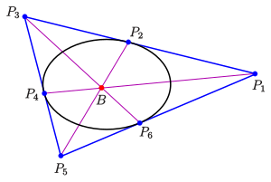 , das einen nicht ausgearteten Kegelschnitt umschreibt (d.h. alle Seiten sind Tangenten des Kegelschnitts), schneiden sich die Diagonalen