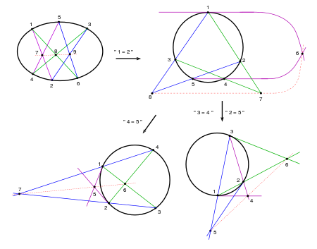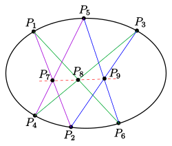 - Die Figur der sechs Punkte auf dem Kegelschnitt wird auch Hexagrammum Mysticum genannt.