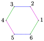Die Nummerierung gibt an, welche 6 der 15 Verbindungsgeraden der 6 Punkte benutzt werden und welche Kanten benachbart sind. Die Nummerierung ist so gewählt, dass der Kantengraph durch ein reguläres 6-Eck dargestellt werden kann. Geraden zu gegenüberliegenden Kanten des Kantengraphs werden also geschnitten. Sollen andere Kanten in die Pascalfigur eingehen, muss man die Indizes entsprechend permutieren. Für die 2. Pascal-Konfiguration wurden die Indizes 2 und 5 vertauscht (s. Bild, unten).