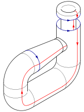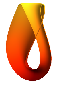 Die Hälfte einer Kleinschen Flasche, gemäß der nebenstehenden Parametrisierung für 0 < u < 2\pi, 0 < v < \pi.