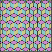 - Eine solche Kachelung (flächenfüllende, schiefwinklig-platonische Kachelung) findet sich auf der Staatsflagge Bayerns (Rautenflagge), heraldische Fachsprache: schräg gerautet.