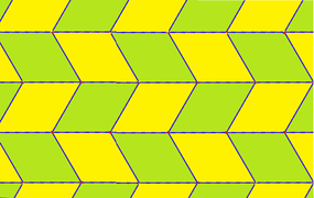 - Eine Besonderheit ist die aperiodische (quasikristalline) Penrose-Parkettierung zweier Rauten mit Innenwinkeln von 36° und 144° bzw. 72° und 108°.