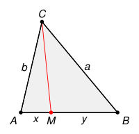 Gegeben sei ein Dreieck (siehe Bild) mit den definierenden Eckpunkten A, B und C und den Seitenlängen