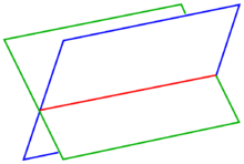 Als Schnittgerade bezeichnet man in der Geometrie eine Gerade, in der sich zwei nicht parallele Ebenen im dreidimensionalen euklidischen Raum schneiden. Eine Gerade im Raum wird üblicherweise durch eine Parameterform einer Geradengleichung beschrieben. Der Weg zu der Geradengleichung der Schnittgerade zweier Ebenen hängt von der Beschreibung der beiden zu schneidenden Ebenen ab. Da es hierfür zwei Standard-Beschreibungen (Normalenform und Parameterform) gibt, gibt es drei Möglichkeiten, die Geradengleichung der Schnittgerade zu bestimmen.