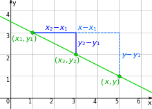 Durch Gleichsetzen dieser beiden Gleichungen folgt daraus dann die Zweipunkteform. Letztere Gleichung entspricht der Punktsteigungsform einer Geradengleichung.