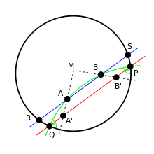 A und B verlaufende Sehne den Kreis in zwei Punkten R und