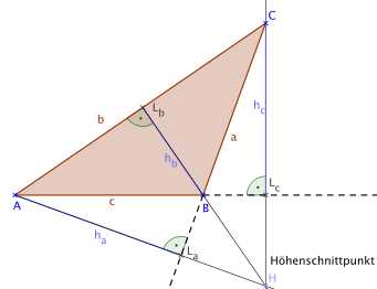 bezeichnet. Jedes Dreieck besitzt genau drei Höhen. Diese schneiden sich in