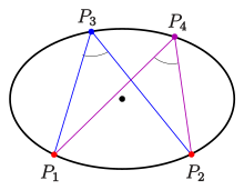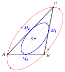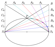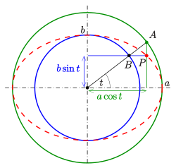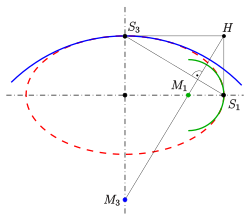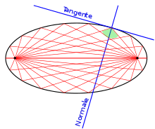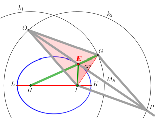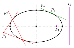 Aufgrund der Leitkreis-Eigenschaft ist eine Ellipse die Äquidistanz-Kurve zu jedem ihrer Brennpunkte und dem Leitkreis mit dem anderen Brennpunkt als Mittelpunkt.