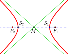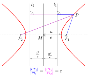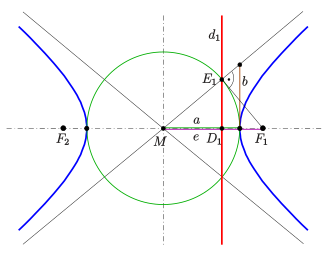 Aufgrund der Leitkreis-Eigenschaft ist ein Ast einer Hyperbel die Äquidistanz-Kurve zu einem ihrer Brennpunkte und dem Leitkreis mit dem anderen Brennpunkt als Mittelpunkt.