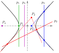 der Erzeugung einer Hyperbel mit Leitlinien (siehe unten).