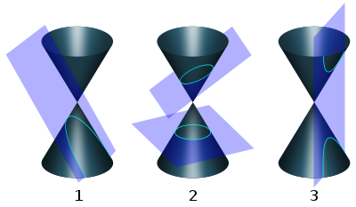 Ein Kegelschnitt (lateinisch sectio conica, englisch conic section) ist eine Kurve, die entsteht, wenn man die Oberfläche eines Doppelkegels mit einer Ebene schneidet. Enthält die Schnittebene die Kegelspitze, so entsteht als Schnitt entweder ein Punkt oder eine Gerade oder ein sich schneidendes Geradenpaar. Ist die Spitze nicht enthalten, so entstehen die nicht ausgearteten Kegelschnitte Ellipse, Kreis (eine Sonderform der Ellipse), Parabel oder Hyperbel.