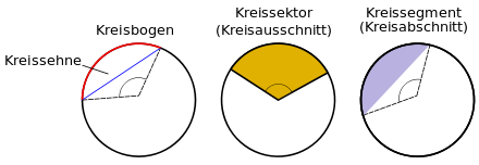 Bogen, Sehne, Sektor, Segment und Ring