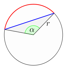 Gibt man den Mittelpunktswinkel α im Bogenmaß an, so lauten die Formeln