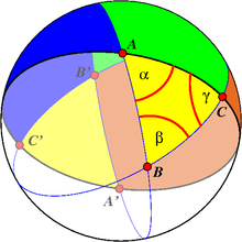 Die drei durch die Eckpunkte eines Dreiecks ABC bestimmten Großkreise