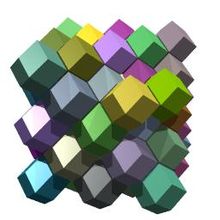 Mehrere Rhombendodekaeder füllen den Raum lückenlos aus, wenn sie – wie in der nebenstehenden Grafik gezeigt – aneinandergefügt werden.
