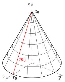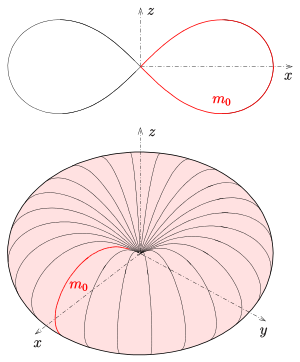 Die analytische Beschreibung einer Rotationsfläche hängt direkt von der analytischen Beschreibung der rotierten ebenen Kurve, des Hauptmeridians, ab. Im Folgenden wird immer vorausgesetzt, dass die z-Achse die Rotationsachse ist.