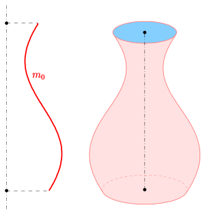- Eine Rotationsfläche lässt sich auch durch die Rotation einer geeigneten anderen Kurve, die nicht mit der Rotationsachse in einer Ebene liegt, erzeugen. Ein einfaches Beispiel ist das Rotationshyperboloid. Es lässt sich durch Rotation einer auf ihr liegenden (zur Rotationsachse windschiefen) Gerade erzeugen. Die erzeugende Gerade ist kein Meridian.