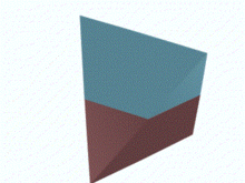 Das regelmäßige Tetraeder kann so in zwei Teile geschnitten werden, dass die Schnittfläche ein Quadrat ist. Die Teile sind kongruent zueinander.