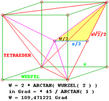 Zur Berechnung des Tetraederwinkels siehe Artikel Stumpfer Winkel.
