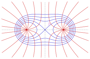 orthogonalen Hyperbeln ist den Feld- und Potentiallinien zweier gleicher Punktladungen ähnlich aber