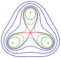 Die Konstruktion einer Cassinischen Kurve lässt sich leicht auf ebene Kurven und Flächen mit beliebig vielen Grundpunkten verallgemeinern:
