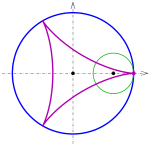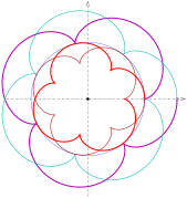 Rollt der kleine Kreis in dem großen Kreis, entsteht eine Hypozykloide bzw. Hypotrochoide. Siehe auch den Artikel über Zykloide.