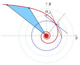 hyperbolische Spirale) und sich dem Kreis mit Radius