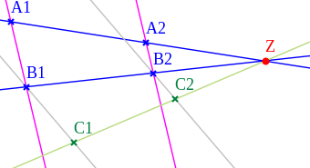 - ↑ Vergleiche hierzu das 5. Axiom für affine Geometrien.
