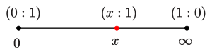 projektiven Gerade (das heißt, einer affinen Geraden, der ein Fernpunkt