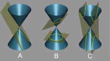 stets den Index 1 und ist ein parabolisches Oval, das heißt die maximale Dimension enthaltener Teilräume ist 0, Einzelpunkte sind die größten enthaltenen Teilräume. In der affinen Klassifikation unterscheidet man 3 Typen: Ellipse, Parabel und Hyperbel, diese sind aber im projektiven Abschluss äquivalent.
