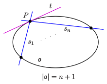 - Die Eigenschaft (P3) ist in pappusschen Ebenen der Charakteristik 2 für alle Ovale mit einem Knoten N (alle Geraden durch N sind Tangenten) erfüllt. Also auch für Ovale, die keine Kegelschnitte sind.