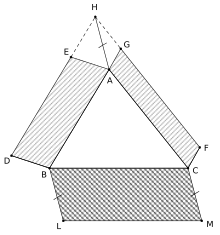 - ↑ Die Formulierung Über … bedeutet, dass das jeweilige Parallelogramm mit dem Dreieck nur eine Seite gemeinsam hat, also – ;in diesem Sinne! ;– außerhalb des Dreiecks liegt.