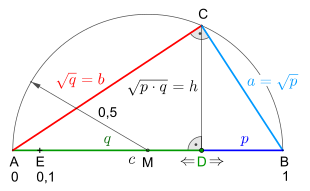 somit ist die Höhe des rechtwinkligen Dreiecks ABC gleich der Quadratwurzel aus {\displaystyle q.}
