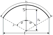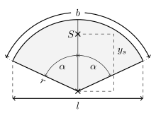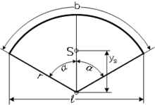 Punkte auf einem ebenen Kreisbogen können am einfachsten in Polarkoordinaten angegeben werden. Wenn die y-Achse auf der Symmetrielinie mit Ursprung im Kreismittelpunkt liegt, lauten die Koordinaten: