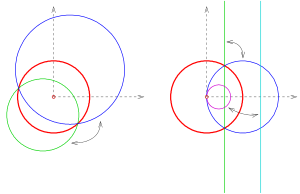 und beschreibt im Fall c=0 die ursprüngliche Gerade, im Fall c\neq 0 einen Kreis durch den Nullpunkt mit der Gleichung