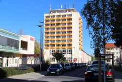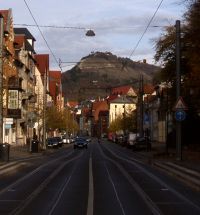 Vom Ernst-Haeckel-Platz ausgehende Straße zum Westbahnhof.