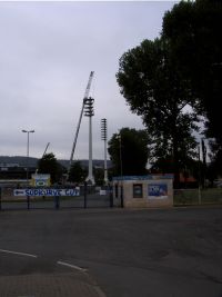 - Nach dem Hochwasser werden die Flutlichtanlagen demontiert.
