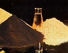 Das hellgelbe Ammoniumdiuranat ist ein Zwischenprodukt bei der Herstellung von Yellowcake. Manchmal wird es ebenfalls als „Yellowcake“ bezeichnet, das entspricht allerdings nicht dem allgemeinen Gebrauch.