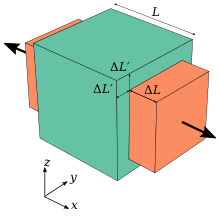 Längendehnung. Solche Materialien werden als auxetisch bezeichnet.