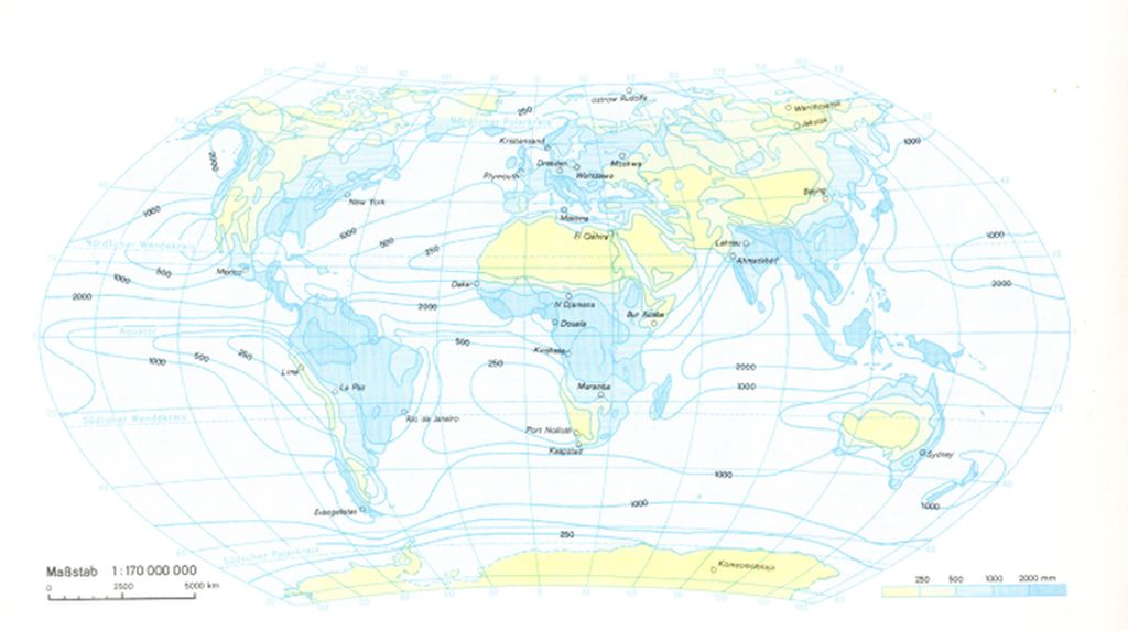 Der aus Wolken fallende Niederschlag und der Wasserdampf (Auskämmung und Photosynthese bzw. Atmung) bewässern die terrestrischen Ökotope. Auf den Landmassen können so Gewässer oder Eismassen entstehen, die auch meso- und mikroklimatische Wirkungen haben. Das Verhältnis von Evapotranspiration (Gesamtverdunstung eines Gebietes) zu Niederschlag entscheidet, ob sich trockene (aride, Steppen, Wüsten) oder feuchte (humide, Wälder, Waldsteppen) Klimate bilden. Auf den Landmassen ist außerdem der Wasserhaushalt der Vegetation eine klimatische Größe.