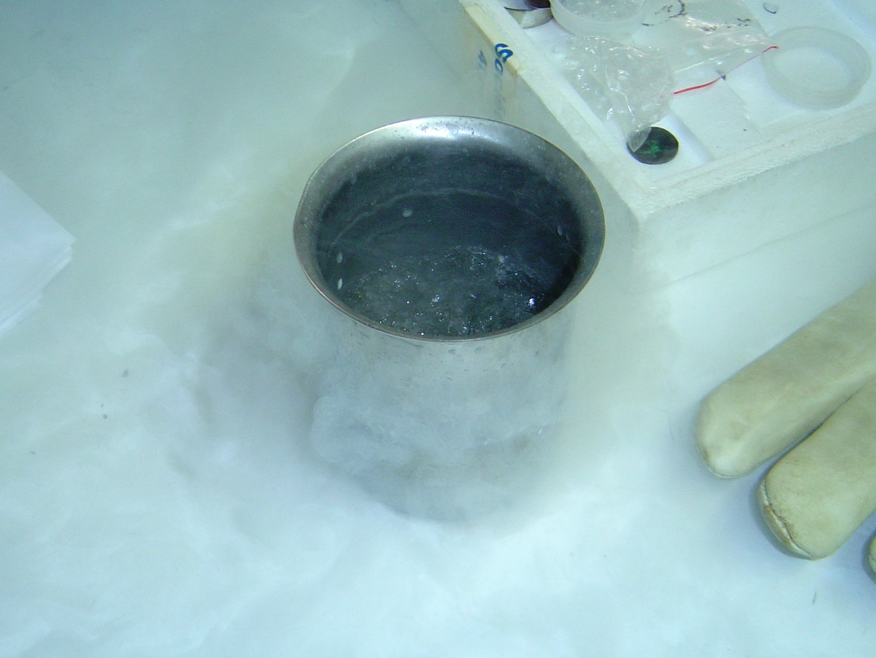 Siedender Stickstoff in einem Metallbecher (-196 °C)