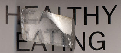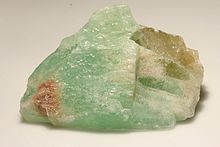| Brechungsindizes | nω bei ~590 nm: 1,640 bis 1,660; rein 1,658 (Im Bereich von 190 bis 1700 nm fällt nω von etwa 1,6 auf etwa 1,4.) nε bei ~590 nm: 1,486 Im Bereich von 190 bis 1700 nm fällt nε von etwa 1,9 auf etwa 1,5. |