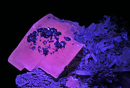 Calcit (pink) und Quarz (violett) aus Mexiko unter UV-Licht