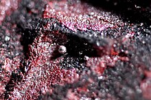 ![]() Cinnabarit auf Calcit aus Charcas, Municipio de Charcas, San Luis Potosí, Mexiko (Größe: 5,0 cm × 3,5 cm × 3,0 cm) | |