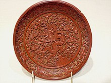 Zinnoberrot hat eine gute Deckkraft, kann sich aber bei starker Beleuchtung dunkel färben.[27][28] Als Malerfarbe kann man Zinnober auch unter folgenden Bezeichnungen finden: Bergzinnober, Cinnabar, Mercurblende, Minium, Quecksilbersulfidrot, Rotes Schwefelquecksilber, Chinesischrot und Vermillion.