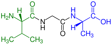 Tripeptide sind aus drei Aminosäure-Resten aufgebaute Peptide und zählen zur Gruppe der Oligopeptide. Wie andere Oligopeptide besitzen Tripeptide häufig eine sehr spezifische physiologische Wirkung, z. B. in der Neurochemie, im Stoffwechsel und als Releasing-Hormone.[2] Proteine werden im Zuge der Verdauung durch Peptidasen in Aminosäuren, Dipeptide und Tripeptide zerlegt.[3] Tripeptide werden im Dünndarm und der Niere über den Peptidtransporter 1 aufgenommen.[4] Tripeptidyl-Peptidasen sind Peptidasen, die Tripeptide abspalten.