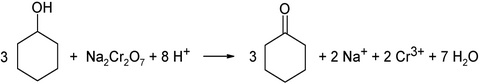 Im Labormaßstab kann Cyclohexanon auch durch Oxidation von Cyclohexanol in saurer Lösung mit Chrom(VI)-salzen, z. B. Natriumdichromat, erhalten werden. Diese Reaktion verläuft mechanistisch über einen Chromsäureester des Cyclohexanols: