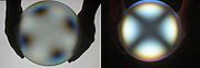 - Die Beschichtung mit dielektrischem Material, das selbst durchsichtig ist, aber ein vom Glasträger abweichende Brechzahl aufweist, sind sowohl Verspiegelungen als auch Entspiegelung möglich. Dies wird bei der Herstellung von Brillengläsern und Linsen für Fotoapparate eingesetzt, um störende Reflexionen zu vermindern. Für wissenschaftliche Zwecke werden Schichten hergestellt, die mehr als 99,9999% des einfallenden Lichts einer bestimmten Wellenlänge reflektieren. Umgekehrt kann auch erreicht werden, dass 99,999% des Lichts die Oberfläche passieren.