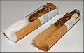Geöffneter Zigarettenfilter vor und nach dem Rauchen -