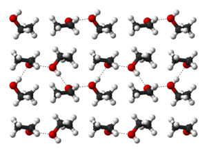 Wasserstoffbrückenbindung in Ethanolkristallen bei −186 °C (87 K)